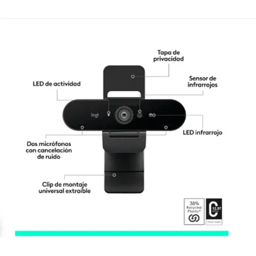 Logitech Cámara Video Conferencia Brio 4K Zoom Digital: 5X Conect. Usb-A O Usb-C