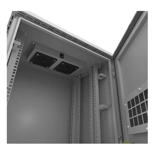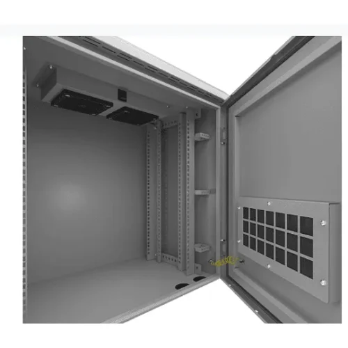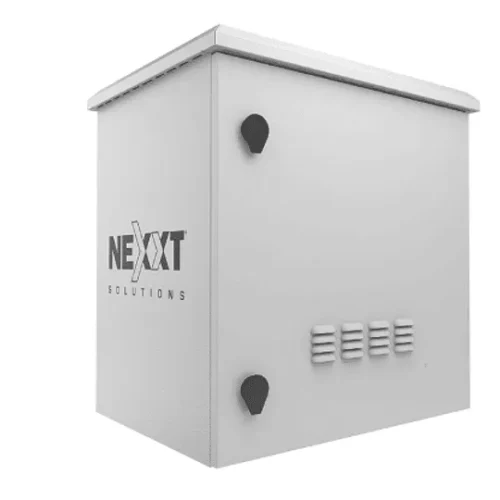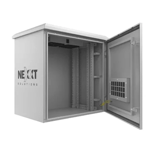 El gabinete exterior Nexxt NPC?O6U64P dispone de espacio para 6 unidades (6U) con medidas internas de 600 x 450 mm. Ideal para instalaciones en poste exterior, con ventilación activa integrada, cerradura de seguridad y estructura metálica robusta resistente al clima.