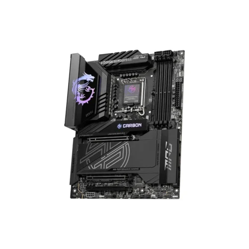 La MPG Z890 CARBON WIFI emplea un esquema de color negro carbón y un patrón elegante sobre la iluminación Mystic light RGB para mostrar una identidad diferente. También es de gran alcance en el interior con Killer 5G LAN y Wi-Fi 7 solución, Thunderbolt 4, Alimentación PCIe suplementaria y los diseños sin esfuerzo, haciendo de esta placa madre definitivamente una de las mejores placas madre Z890 ATX para procesadores Intel Core Ultra.
