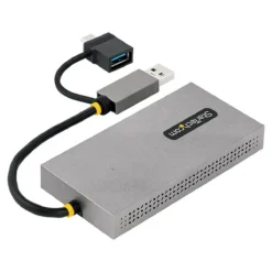 El adaptador USB A/C Macho 2x HDMI de StarTech.com se presenta en un elegante color gris y cuenta con una memoria interna DDR3. Dispone de dos puertos HDMI para conectar hasta dos pantallas simultáneamente, lo que permite aumentar la productividad al trabajar o disfrutar del entretenimiento multimedia.
