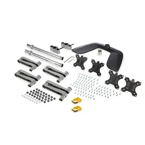 Fabricación en aluminio y acero, este soporte para cuatro monitores, de servicio pesado, le permite configurar su espacio de trabajo para lograr una productividad óptima. Este soporte para monitor admite cuatro monitores de hasta 32″ cada uno y peso máximo de 8kg por monitor, compatibles con soporte VESA (75×75, 100×100).