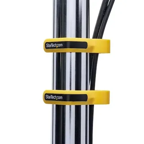 Soporte para cuatro monitores, con clips de gestión de cables a lo largo de los brazos y mástil del centro, lo cual permite organizar los cables y mantener un espacio ordenado de trabajo con el ordenador, y además se incluyen herramientas de ajuste para la tensión de las articulaciones