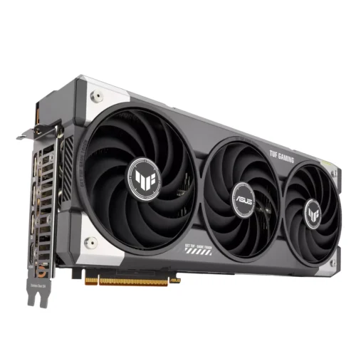 La tarjeta incorpora el sistema de disipación TUF Gaming de ASUS, diseñado para mantener temperaturas bajas incluso bajo carga máxima. Las aletas del disipador están optimizadas para una circulación de aire eficiente, mientras que los ventiladores inteligentes se adaptan a la temperatura para garantizar un funcionamiento silencioso durante tareas ligeras.