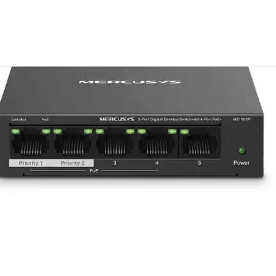 • Conmutador de escritorio Gigabit de 5 puertos con PoE+ de 4 puertos (MS105GP)